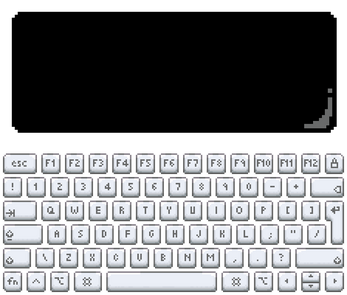 This is a pixelated keyboard in a mac style, it has sprites for both pressed and unpressed, also if you're not happy with the font on the keyboard I've included the empty keys so that you can add your own font if you wanted.